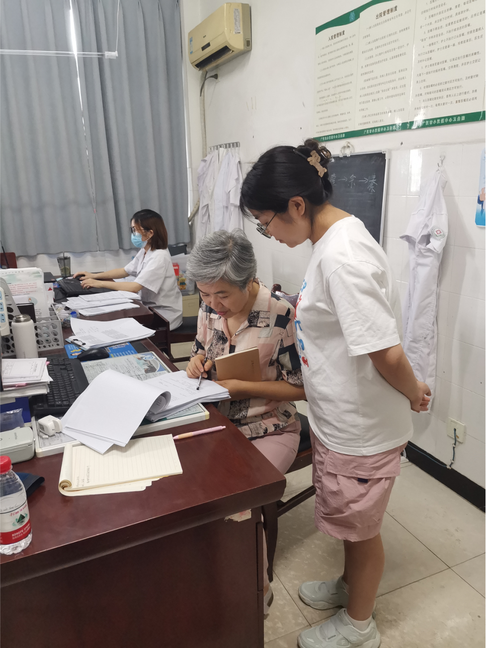 喻洪钢在交流中肯定了卫生院取得的成绩,医卫组来了四次,每一次都能看到医院工作的进步和发展,基础工作做得扎实,便民化措施到位,病历书写、工作记录有提高。她在肯定成绩的同时指出,医生在患者诊断中要有依据,检查项目必须有指征。可以向二级医院目标奋斗。院感专家张强对医院院感管理提出建议,培训院感专业人员,组织机构落实,建立院感流程程序,编写院感手册,完善有关资料,标识到位。主任中医师官超云走访了内科和中医馆,她对病历书写与管理提出了看法,中医病历书写要正规,护士执行签名要规范。护理部主任护师古学秋对护理质量、手术室、胃镜室抢救药品与器材管理提出意见,指出了病房管理中存在的细节问题。原康复科主任廖小红对中医、针灸、康复等提出看法,中医康复有挖掘潜力,但科室里缺乏现代的康复仪器,治疗分区不明确,患者知情告知做得不够。药学人员李淮对药剂科规范化管理提出意见,希望加强毒麻药品管理,效期药品管理,库房药品管理。