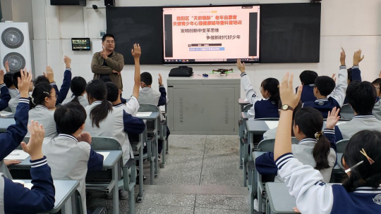 当天的活动中,旌阳区老科协教体委主任、教育专家王善云带来的科普课成为亮点。他以“发明创新中变革思维,争做新时代好少年”为题,面向初二(8)班全体师生,用生动案例讲解创新思维的培养方法,从日常生活中的小发明到科技领域的大突破,引导学生发现问题、勇于探索。课堂上互动频繁,学生们积极提问、踊跃发言,课后纷纷表示深受启发,将努力增强创新意识,争做新时代优秀青少年。