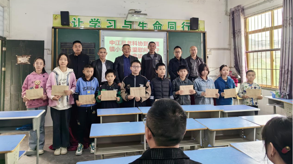 中江县老科协关工委到万福镇小学看望慰问留守儿童