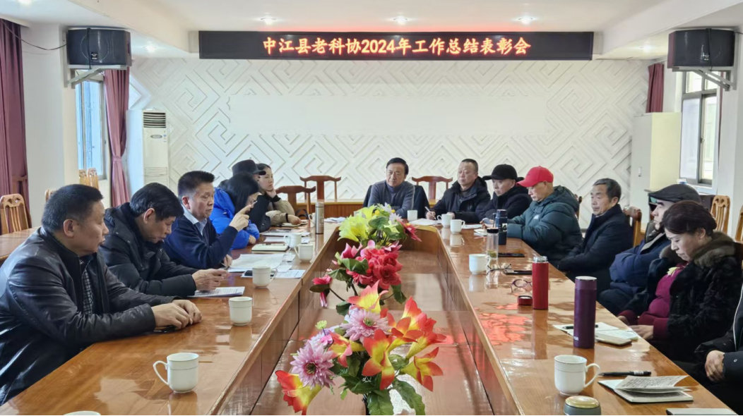 县老科协常务副会长彭朝忠传达了德阳市老科协2024年工作总结表彰会议精神;县老科协秘书长白耀文总结2024年工作,提出2025年工作要点;县老科协副会长张凯宣读中江县老科协关于表彰奖励2024年度“中江老科协奖”先进个人的决定,关于2024年调研课题评选奖励的通报。