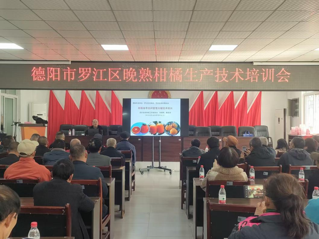 2026年3月20日,由德阳市老科协、罗江区老科协、罗江区农业农村局主办的“德阳市罗江区晚熟柑橘生产技术培训会”,在罗江区晚熟柑橘主产镇鄢家镇政府会议室进行。省老科协副会长、省农科院原副院长、著名水果专家刘建军教授,省老科协农业科学分会农业专家、省农院果树研究中心原副主任、水果专家陈克玲教授以及由德阳市老科协常务副会长兼秘书长戴厚麟、德阳市老科协副会长兼三农委主任胡坚率市级有关农业老专家一行参加培训会。培训会由罗江区老科协会长叶国民主持。