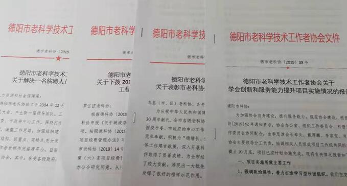 德阳市老科协为加强老科协创新和服务能力建设,向市科协申报了实施《学会创新和服务能力提升》项目,经过一年的奋力工作,项目按方案圆满完成,得到市科协验收评审组的高度赞扬。
