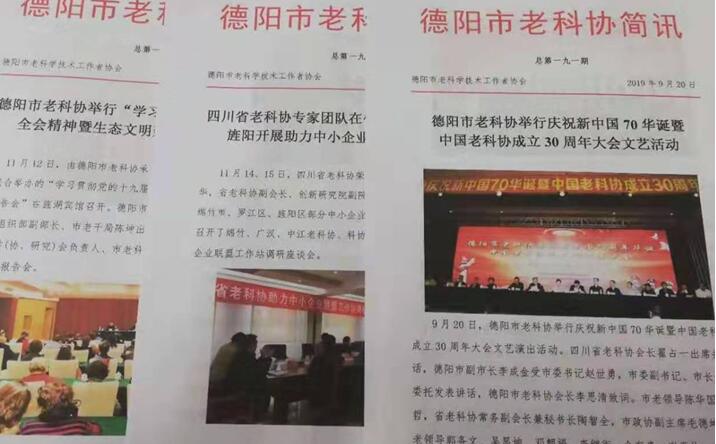 据统计全市老科协在省老科协网站采用80篇(德阳市老科协办公室51篇),多篇作为栏目开篇采用;应四川省老科协、四川科教网约稿4篇,省市多部门相关刊物和网站转载;市老科协印发《健康保健信息》12期4000余册,编辑印刷《健康保健知识汇编》笫4册1300本;9月20日成功举办了庆新中国70华诞暨中国老科协30周年大会文艺演出,省、市领导和老科技工作者代表460余人参加。