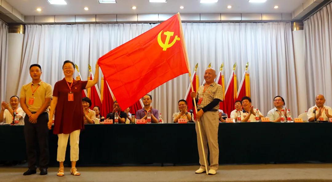 会上,上级党组织为德阳市老科协党委授牌、授印、授旗、授书、授党徽。