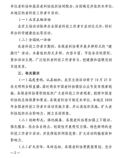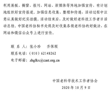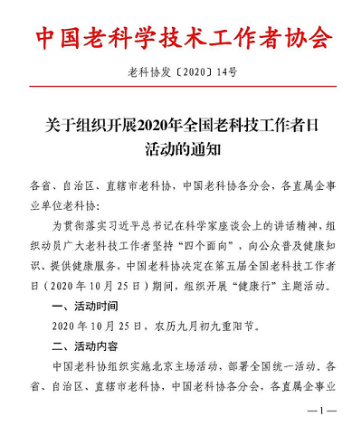 中国老科学技术工作者协会关于组织开展2020年全国老科技工作者日活动的通知
