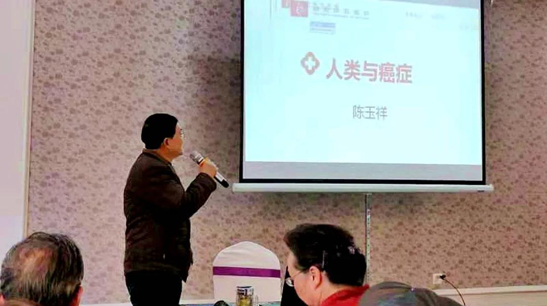 外科专家陈玉祥以 “人类与癌症”为题进行健康科普宣讲。他从癌症发病率与死亡率说起,深入浅出的讲解癌到底是什么?讲到免疫系统、基因突变对癌症的影响;系统讲解了癌症手术、放疗、化疗、质子束、聚焦超声、药物靶向治疗,以及癌症治疗与展望。关于癌症的预防,陈玉祥从人们日常生活习惯、饮食结构、遗传因素、运动等说到十大致癌因素。讲座受到会员们热烈欢迎。