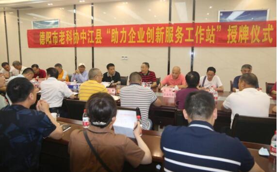 授牌仪式上,戴厚麟就老科协的性质、地位、作用作了全面阐述,并就老科协开展助力企业创新服务活动的目的、意义以及工作站的建设等作了讲解。市老科协会长李思清向中江县委常委、统战部部长周勇,中江县老科协会长蒋宗文授“助力企业创新服务”工作站铜牌。这是继德阳市老科协开展助力企业创新服务活动,在绵竹市、旌阳区、市经开区建站后的第四个“助力企业创新服务”工作站。