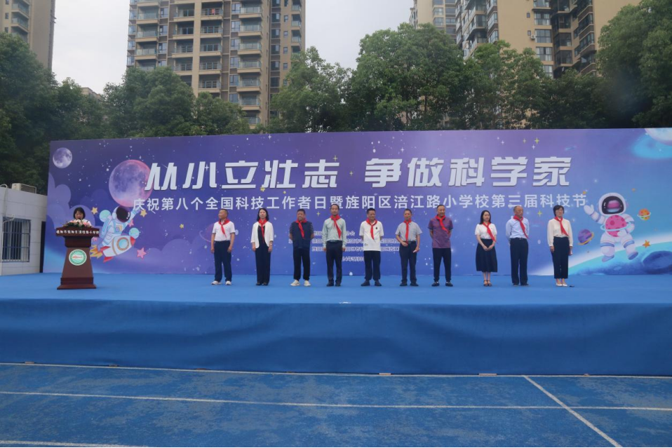 李思清会长在致辞中代表德阳市老科协向全市老科技工作者致以节日的问候。他通过两个故事深刻阐明科技强国的重要,希望同学们向科学家学习,学习他们的科学态度和科学精神,培养社会责任感和历史使命感,“从小立壮志,争做科学家”,勇敢地担负起新时代重任,争做一个具有科学态度、追求真理的接班人,为报效祖国、积极投身现代化建设事业奠定坚实的基础。