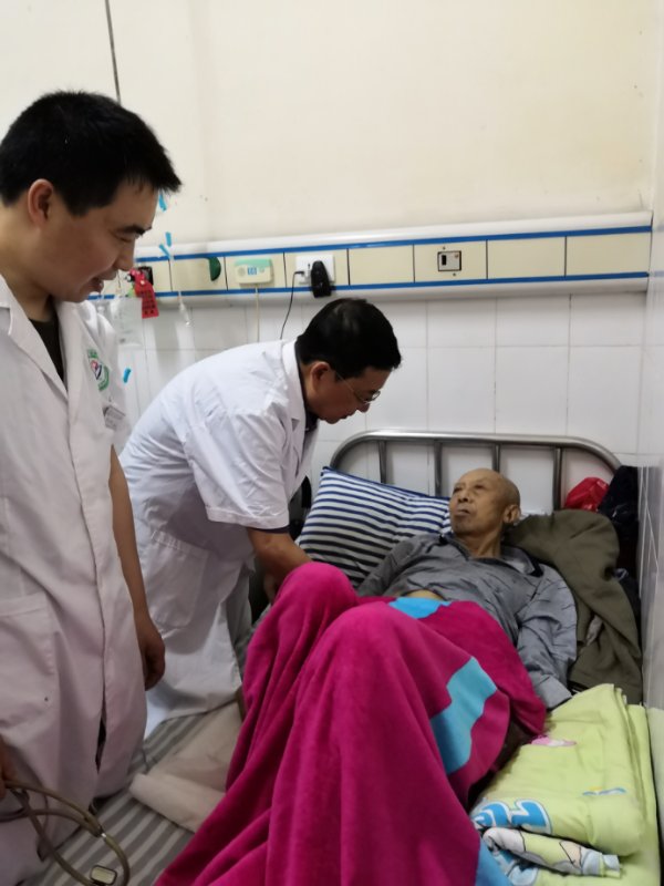 外科专家陈玉祥到外科病区,了解基本情况,随同外科医生一起查房。他重点为一名十二指肠溃疡患者和一位黑色素瘤患者进行了查体、检查、诊疗。在带教龙台镇中心卫生院外科医生的过程中,陈玉祥专家根据自己多年临床实践经验和丰富的理论知识,详细讲解了查体注意事项、检查过程的先后顺序、诊疗时不能够忽略的情况,并对这两位患者的治疗方案提出了自己的治疗建议。