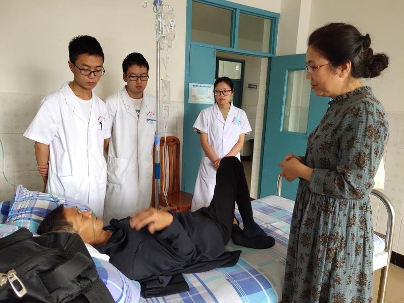 医卫管理专家官超云,同卫生院医生一起查房一位食道癌晚期患者,针对个体特殊患者,对医疗质量是“安全的保障,效益的源泉”做了再三的强调及说明。对医疗管理体系、三级医师查房、医疗质量记录、医疗考核标准及季度组织检查、三基考核等问题详细提出了自己的看法和建议。