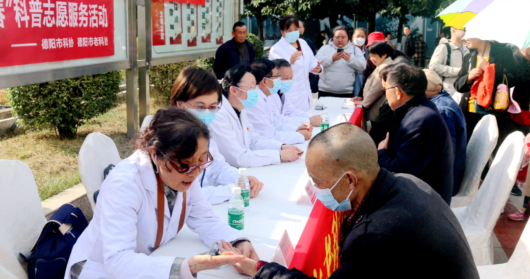在义诊活动中,医卫专家热情问诊,耐心解答群众病情,开出处方,化解群众疑惑,为患者提出医疗建议和生活注意事项。义诊活动受到当地老百姓的热情欢迎。在义诊活动现场,德阳市老科协还向过往群众发放了由德阳市老科协医卫专家编撰的《健康保健信息》资料200余本。