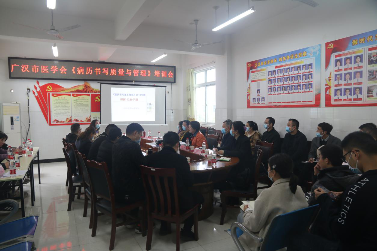 座谈结束后,原德阳市中西医结合医院主任中医师官超云,为来自广汉境内9家医疗卫生机构、4家社区医疗卫生服务中心的医务人员进行了《病历书写质量与管理》培训。